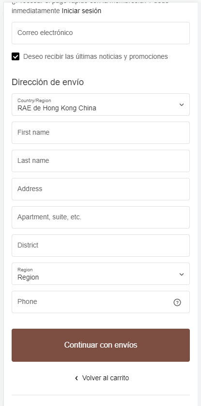 3. Cuando tenga todo lo que necesita en su carrito de compras, complete la información de envío en los campos correspondientes.